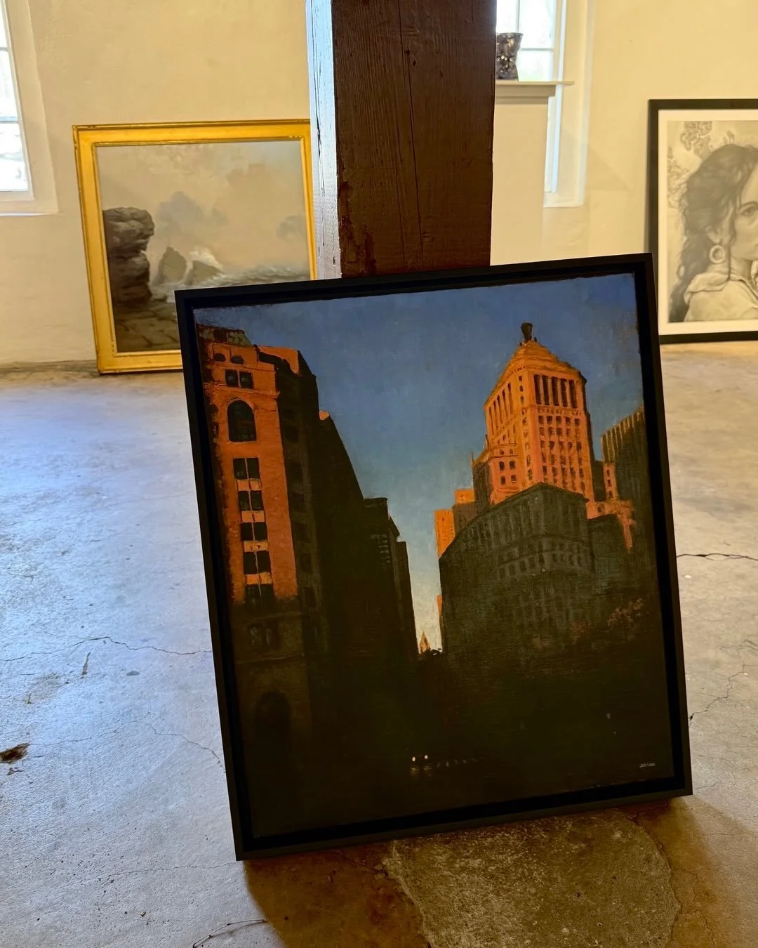 Gone In Greenpoint, 10x10" Oil on Cradled Wood Panel in floater frame $450